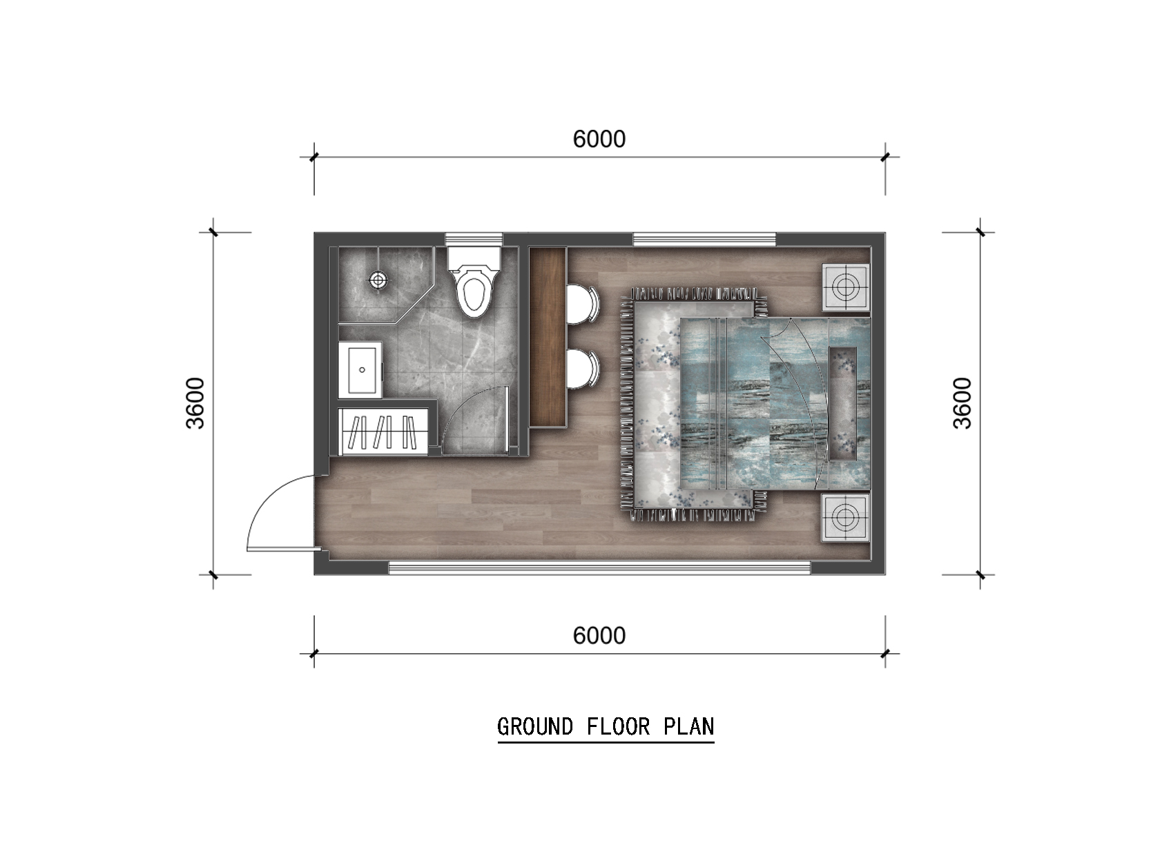 PLAN 6434 的基本信息 尺寸 寬 6m 深度 3.6m 面積(㎡) 一樓 21.6㎡ 占地面積 21.6㎡ 總建筑面積 21.6㎡ 高度(m) 1樓 2.8m 總高度 3.3m 每戶 樓層 X1 臥室 X1 客廳 X1 浴室 X1 露臺 X0 車庫 X0 閣樓 X0